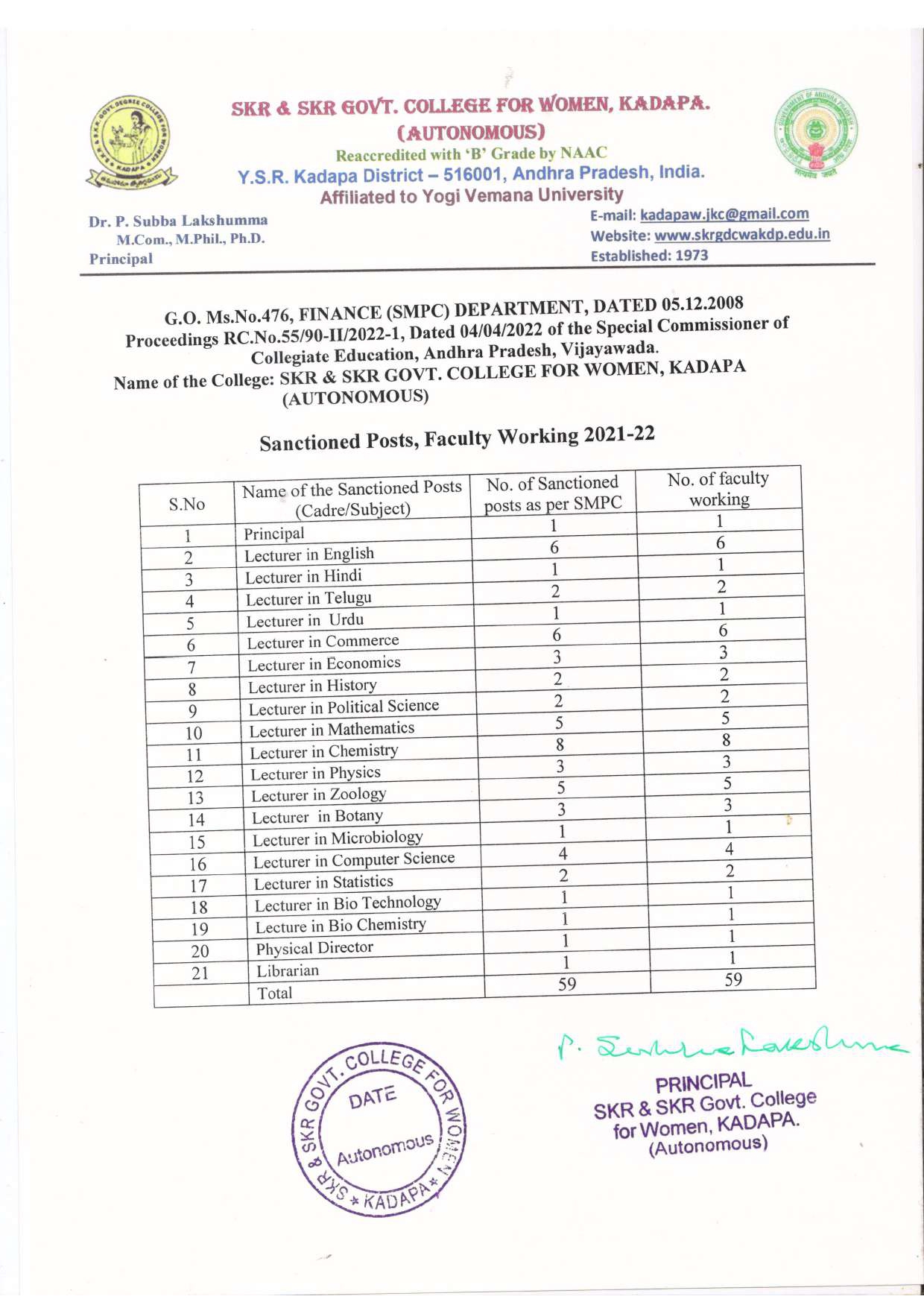 SKR & SKR GOVT. COLLEGE FOR WOMEN, KADAPA.