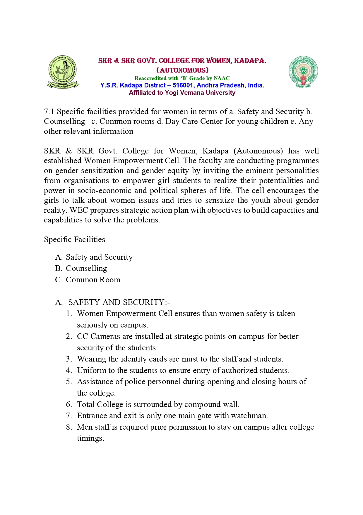 - Criteria VII 7.1.1 Specific Facilities