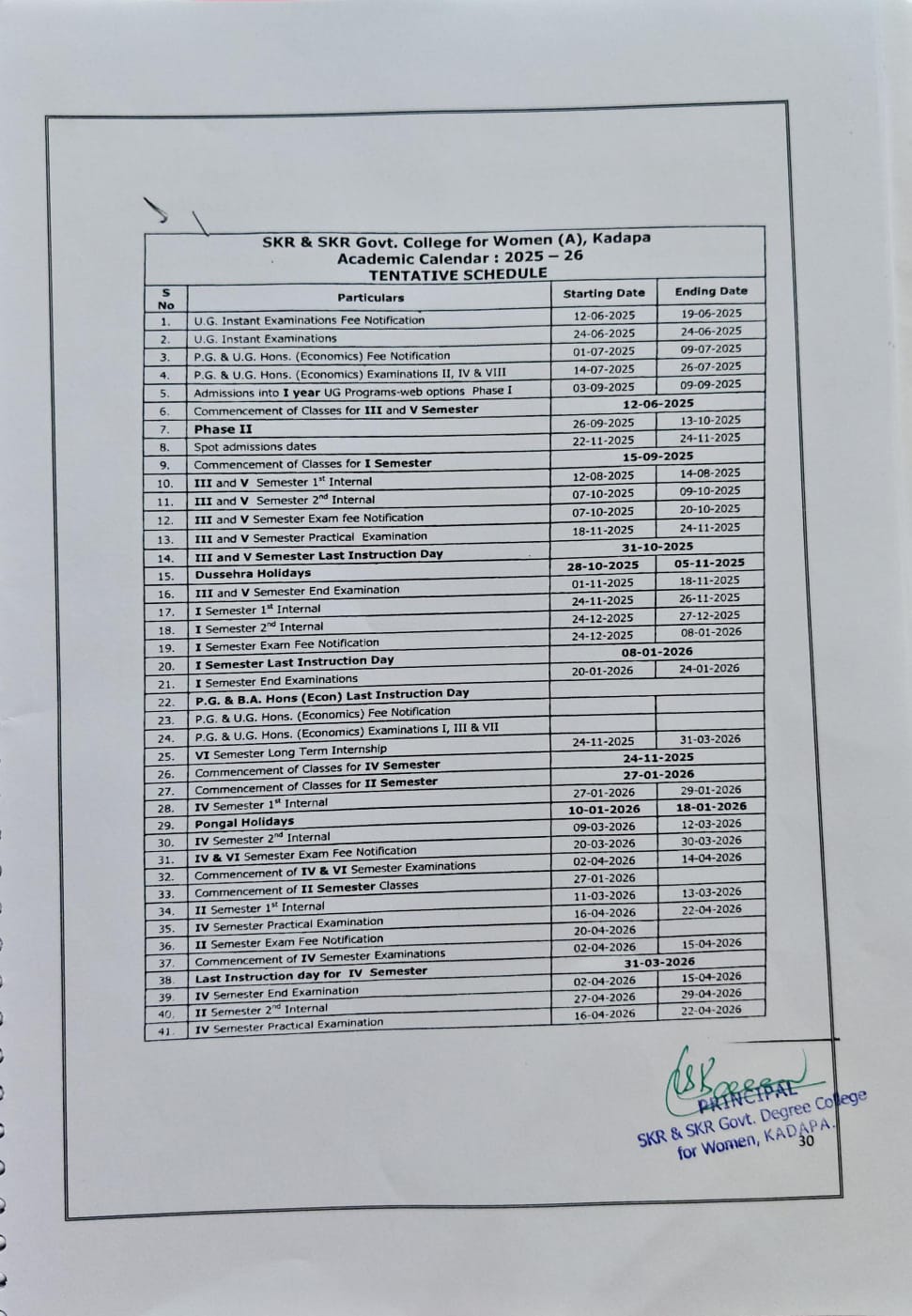 ACADEMIC CALENDER