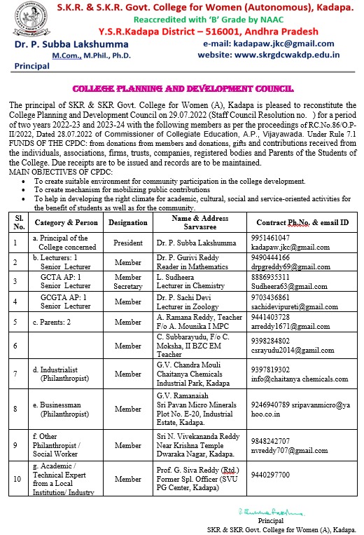 The following plans are derived after a discussion in staff council meeting on the basis of analysis, assessment and estimates with a vision for future development and quality sustenance. Keeping in mind, the short term, medium term and long term development plans, the college always adopt sabottom-papproach with astrategic directive given from the top administration management.
