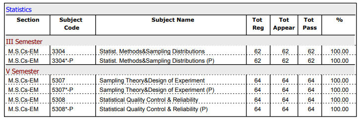 PHYSICAL SCIENCES - STATISTICS - Results
